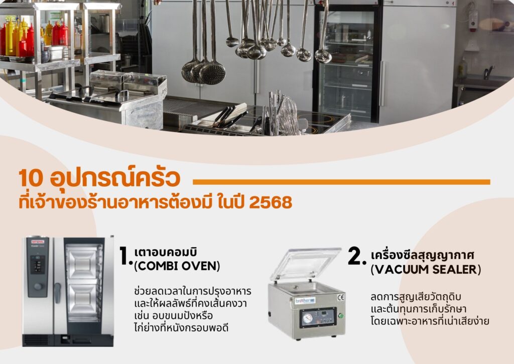 ในปี 2568 ธุรกิจร้านอาหารต้องเผชิญกับความเปลี่ยนแปลงที่รวดเร็ว ทั้งจากพฤติกรรมผู้บริโภคที่เน้นความสะดวกและคุณภาพสูง ไปจนถึงการแข่งขันที่เข้มข้น การลงทุนในอุปกรณ์ครัวที่ทันสมัยไม่เพียงช่วยเพิ่มประสิทธิภาพ แต่ยังช่วยลดต้นทุนและปรับปรุงคุณภาพอาหารได้อย่างดีเยี่ยม นี่คือ 10 อุปกรณ์ครัวที่เจ้าของร้านอาหารไม่ควรมองข้ามในปี 2568: